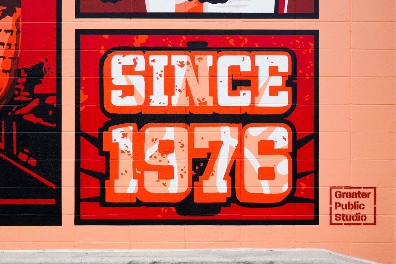 GPS worked closely with the Bucs and Coke Florida in order to produce a mural celebrating 50 seasons of the Bucs. Together, we created a vibrant mural representing the pride that the people of Tampa Bay have for their home team, spotlighting current players while incorporating nods to the team’s legacy and Super Bowl victories. Throughout the artwork, Coke Florida’s branding is seamlessly woven in through their sunburst imagery and iconic Coke bottle silhouette.